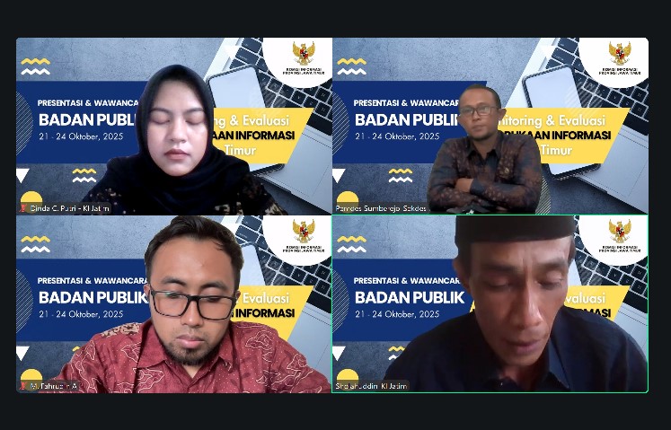 Sumberejo, 24 Oktober 2025 β Pemerintah Desa Sumberejo mengikuti tahap presentasi dan wawancara dalam kegiatan Monitoring dan Evaluasi (Monev) Keterbukaan Informasi Publik Tahun 2025 yang diselenggarakan oleh Komisi Informasi Provinsi Jawa Timur, Jumat (24/10), secara daring melalui Zoom Meeting.