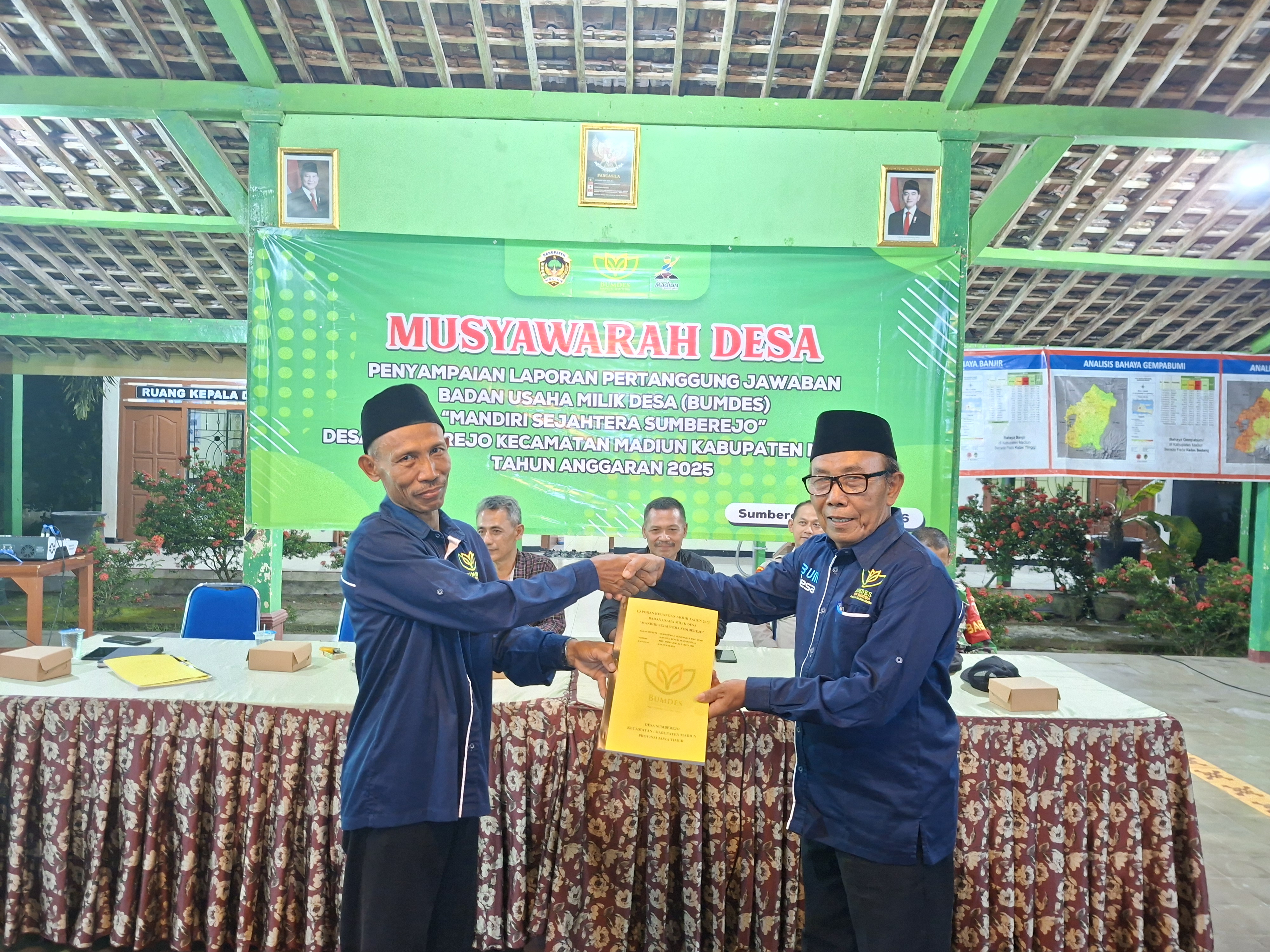 Desa Sumberejo, Madiun- Badan Usaha Milik Desa (BUMDes) "Mandiri Sejahtera Sumberejo" Desa Sumberejo, Kecamatan Madiun, menggelar penyampaian Laporan Pertanggungjawaban (LPJ) Tahun Anggaran 2025. Kegiatan berlangsung di Balai Desa dan dihadiri oleh Camat Madiun, Pemerintah Desa, BPD, para tokoh masyarakat, pengurus dan pengelola BUMDes, pengawas BUMDes serta pendamping program ketahanan pangan.