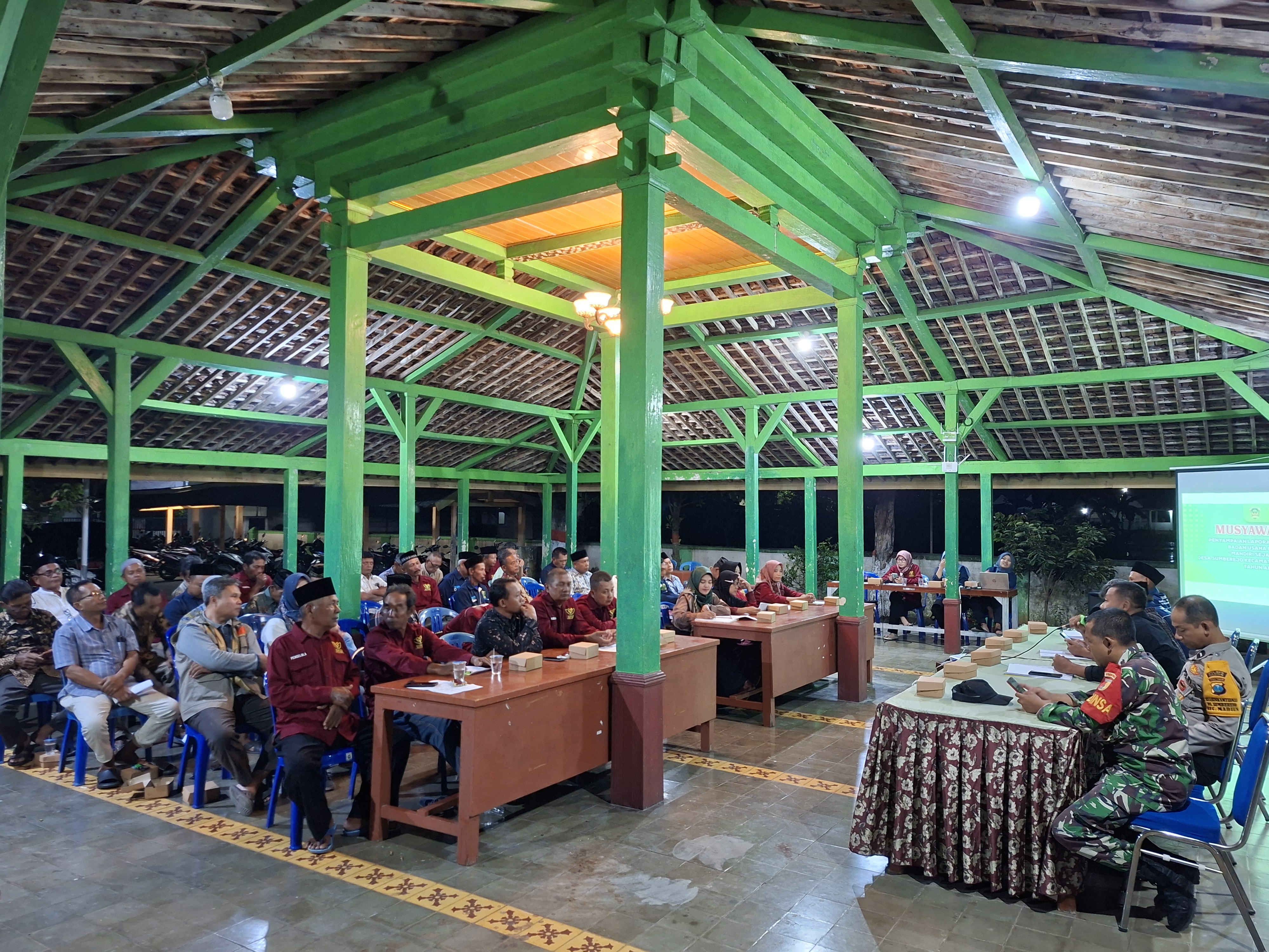 Dalam paparan dari Direktur BUMDes, pengurus menyampaikan bahwa BUMDes yang telah berjalan sejak 2017 ini terus melakukan perbaikan dan pembenahan kegiatan setiap tahunnya. BUMDes juga aktif mendukung berbagai kegiatan masyarakat desa, mulai dari _support_ kegiatan HUT RI di 3 dusun, kegiatan sosial santunan anak yatim, hingga dukungan HUT SSB.
